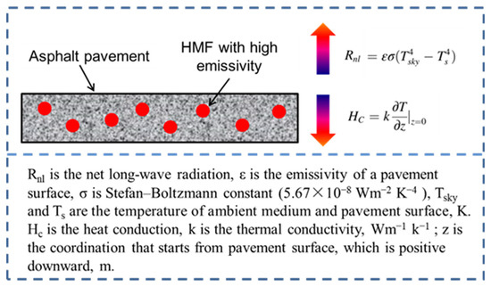 According to [49,50], high thermal conductivity asphalts for the wearing layer would induce more solar heat to transfer in asphalt pavement, and the upper surface temperature would thus reduce. Then, the temperature distribution of pavements with HMF is validated in the following section.