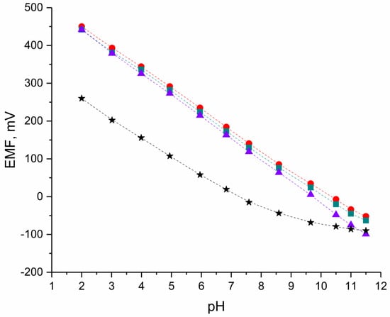 - Spitzer, P.; Wilson, G.S.; Rondinini, S.; Naumann, R.; Covington, A.K.; Camoes, M.F.; Mussini, T.; Milton, M.J.T.; Buck, R.P.; Brett, C.M.A.; et al. Measurement of pH. Definition, standards, and procedures (IUPAC Recommendations 2002). Pure Appl. Chem. 2007, 74, 2169–2200. [Google Scholar]