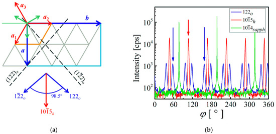 - Nishinaka, H.; Komai, H.; Tahara, D.; Arata, Y.; Yoshimoto, M. Microstructures and rotational domains in orthorhombic ε-Ga2O3 thin films. Jpn. J. Appl. Phys. 2018, 57, 115601. [Google Scholar] [CrossRef]