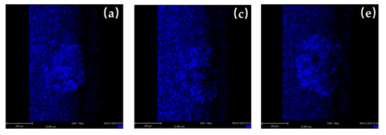 According to Figure 3, when the temperature was 20 °C, 100 °C, and 200 °C (Figure 3a,c,e), the main wear mechanisms of 316L stainless-steel wire were adhesive wear and abrasive wear. With increasing temperature, adhesive wear gradually became severe, while the grooves caused by abrasive wear gradually changed from short and deep to shallow and long. In the process of wear, there are hard micro-convex bodies and transfer particles, which can produce micro-cutting on the friction pair surfaces. Due to the surface stress, a part of the transfer particles is aggregated into a group and becomes larger, forming short and deep grooves, while for the transfer particles still with small volume, the micro-cutting grooves are shallow and long. However, the larger particles will be softened with increasing temperature, being easily rolled and coated on the friction pair surfaces, so the number of short and deep grooves decreases [23,24]. While fine transfer particles are also affected by material softening, they still play a certain role in cutting due to their large number and small force area. At the same time, the softening of matrix materials caused by a temperature rise leads to easier migration and peeling of surface materials, which aggravates the adhesive wear.