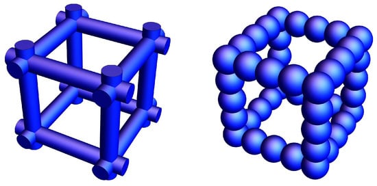 After gelation and drying, the aerogel microstructure looks as if the particles would overlap, the spheres would have been penetrated into each other and the necks have a concave curvature. In a simplified manner, one can then describe the network of particles as an arrangement of simple cubic boxes, whose edges consists of spheres with radius R. If these spheres overlap by a small amount , meaning they interpenetrate by an amount of this overlap affects the porosity, the solid fraction and the mechanical properties as recently shown in [11,17]. The elastic and plastic response of the full box or the whole network can be analyzed by considering the mechanical behavior of a beam (strut) located at the box edges. Figure 2 shows a box made with cylindrical edges compared to a box having strings of overlapping pearls at the edges.