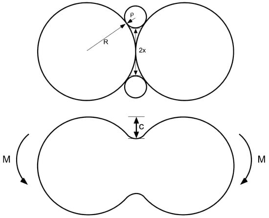 For mathematical modeling of the neck between two particles, consider the schematic illustrated in Figure 5. From the sketch, one can derive the following relation for the neck radius,