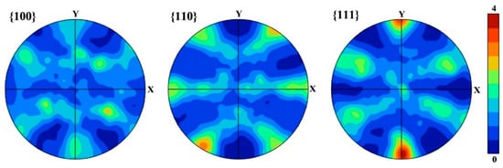 Pole figures for 6 wt.% Mn-doped martensitic steel after solid solution.