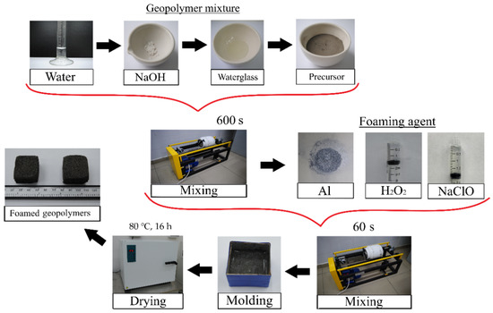 - Cerný, R. Directly foamed geopolymers: A review of recent studies. Cem. Concr. Compos. 2022, 130, 104530. [Google Scholar] [CrossRef]
