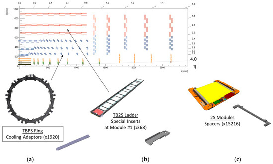 - The CMS Collaboration. The Phase-2 Upgrade of the CMS Tracker: Technical Design Report; Klein, K., Ed.; Report number CERN-LHCC-2017-009, CMS-TDR-014; CERN: Geneva, Switzerland, 2020. [Google Scholar] [CrossRef]