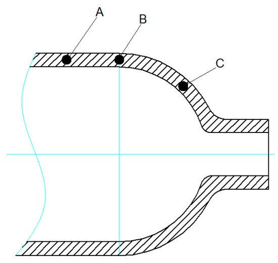 Disc sampling (A, B, and C) is shown in Figure 9 after spinning the cylinder. The sampling direction is circular. The sampling positions are the cylinder body (A), the joint of the cylinder body (B) and shoulder (C). The sampling depth is 1/2 wall thickness from the surface.