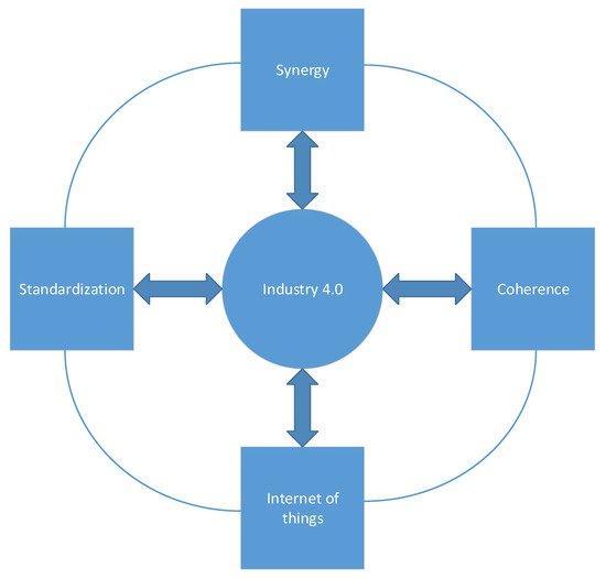 The connection of the Internet of things with industry 4.0 is shown in Figure 1, where, in addition to the use of the Internet, there is also an emphasis on the synergy and coherence of production and technological processes.