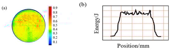 Spatial energy distribution of the flat-top laser beam. (a) Spatial energy distribution and (b) actual profile.