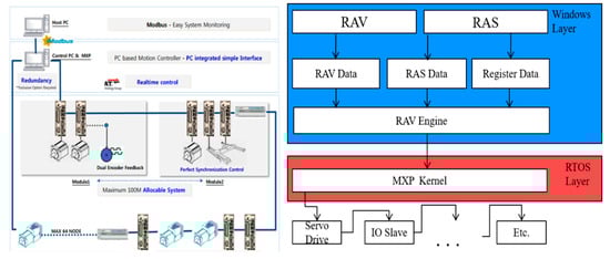 In the structure of the control system, RMC Advanced Visualizer (RAV) is a function that interworks with the PC while editing and managing a human–machine interface (HMI). RMC Automation Studio (RAS) edits and manages PLC programs to control the servo motors and sensors of each axis. It also modifies and manages the parameters responsible for the position control of each axis.