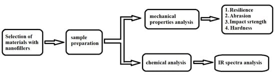 Complex composite materials are used in many areas of dentistry. Initially, chemically hardened materials were also used, and in this group nanohybrid composites are highly valued. They are often used today, mainly for the direct reconstruction of damaged hard tooth tissue materials for rebuilding damaged tissues using indirect adhesive techniques. The research was conducted to determine the mechanical properties of materials with nanofillers. The article focuses on methods of important test methods for dental prosthetics: resilience, abrasion, wear test, impact strength, hardness, SEM, and chemical analysis. As part of this work, five different series of hybrid composites with nano-fillers were tested. The mechanical properties of composites, such as compressive strength, microhardness, flexural strength, and modulus of elasticity, depend mainly on the type, particle size, and amount of filler introduced. The obtained test results showed that the type and amount of nanofiller have a significant influence on the mechanical and tribological properties. The introduction of nanofillers allowed us to obtain higher mechanical properties compared to classic materials discussed by other researchers. The study observed a change in vibrations in the IR spectrum, which allowed a comparison of the organic structures of the studied preparations.