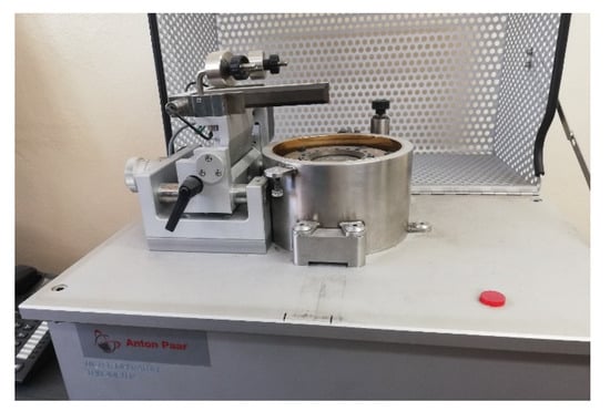 The wear test was carried out in laboratory conditions by measuring the coefficient of friction of a ball (counter-sample) on a rotating disc (sample) pin-on-disc measuring system (Figure 3).