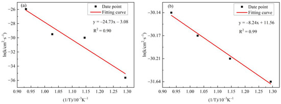 The relationship between lnk of N and O and 1/T (a) N element; (b) O Element.