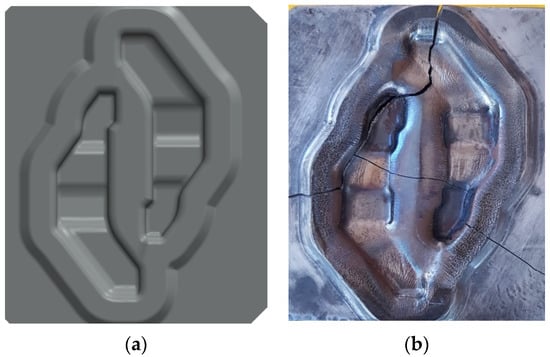 The view of: (a) geometric model of the designed die inserts for pre-forming in a double forging system and (b) the insert in post-operation period.
