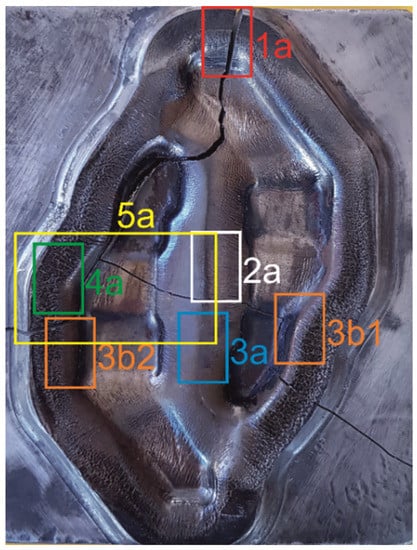 To determine and verify the life of forging tools, taking as an example the pre-forming die insert operating in a dual system, the macrostructure was analysed. The results of 3S scanning are presented in Figure 2.