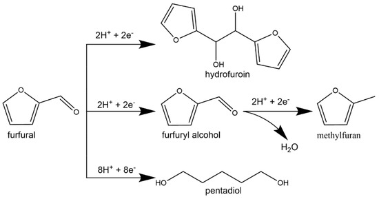 - May, A.S.; Biddinger, E.J. Strategies to Control Electrochemical Hydrogenation and Hydrogenolysis of Furfural and Minimize Undesired Side Reactions. ACS Catal. 2020, 10, 3212–3221. [Google Scholar] [CrossRef]