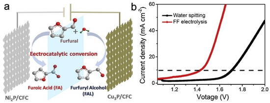 - Zhang, X.; Han, M.; Liu, G.; Wang, G.; Zhang, Y.; Zhang, H.; Zhao, H. Simultaneously high-rate furfural hydrogenation and oxidation upgrading on nanostructured transition metal phosphides through electrocatalytic conversion at ambient conditions. Appl. Catal. B Environ. 2019, 244, 899–908. [Google Scholar] [CrossRef]