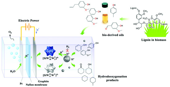 - Song, Y.; Chia, S.H.; Sanyal, U.; Gutiérrez, O.Y.; Lercher, J.A. Integrated catalytic and electrocatalytic conversion of substituted phenols and diaryl ethers. J. Catal. 2016, 344, 263–272. [Google Scholar] [CrossRef]