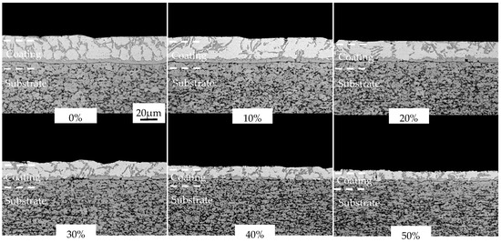 EPMA micrographs of AS60/60 coating at different reduction ratios.
