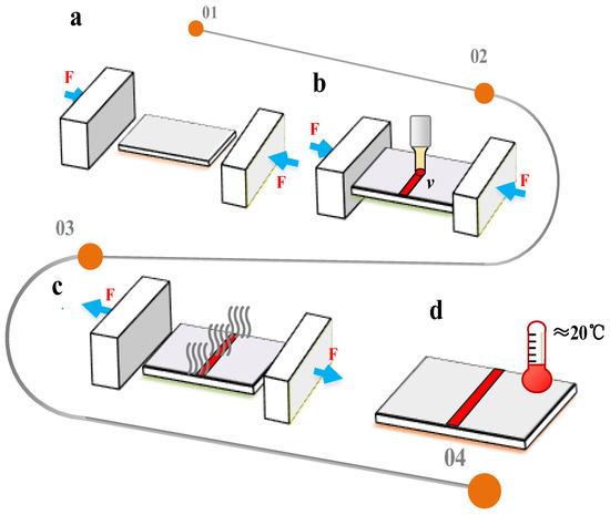 Due to the type of heat source, there are many forms of thermal stress forming, such as flame stress forming, high-frequency induction stress forming, laser stress forming, etc. In this work, laser stress forming (easy to automate, precise and concentrated heat energy, high precision [7,8]) and plate (more widely used than tube) are selected as the main research objects.