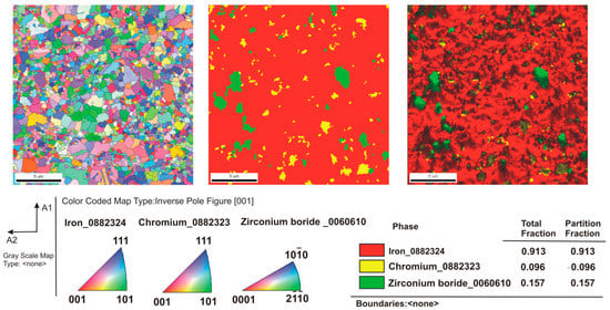 The EBSD maps of the steel+5% ZrB2 composite.