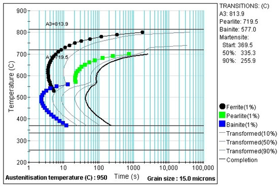 TTT diagram for 20MnAl steel calculated in JMatPro software.