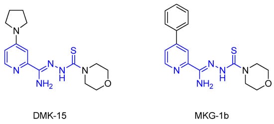 Structures of 2,4-disubstituted thiosemicarbazone derivatives of pyridine DMK-15 and MKG-1b.
