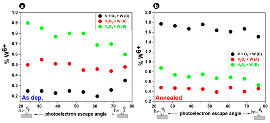 - Takami, H.; Kanki, T.; Ueda, S.; Kobayashi, K.; Tanaka, H. Electronic Structure of W-Doped VO2 Thin Films with Giant Metal–Insulator Transition Investigated by Hard X-Ray Core-Level Photoemission Spectroscopy. Appl. Phys. Express 2010, 3, 063201. [Google Scholar] [CrossRef]