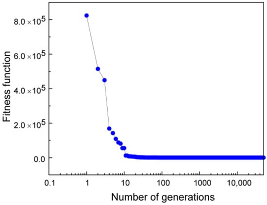 The average fitness error (F) that represents the soundness of the data fitting by GA for each generation is calculated as