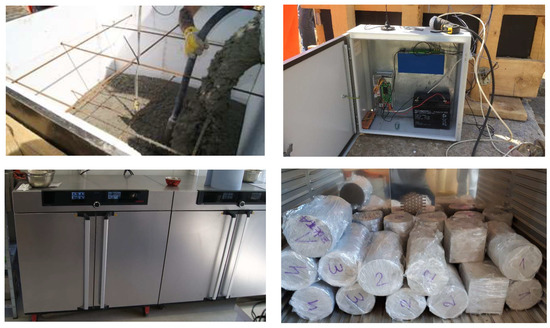 The concrete pouring of the test blocks took place at different times of the year. The different weather conditions had a significant impact on the temperature of the concrete mixture at the construction site and the maximum temperature of the concrete during the setting process (Table 2).