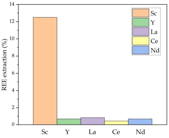 The REEs extraction by NaOH is shown in Figure 4. Alkaline solutions can still dissolve Sc, which was also found by Li et al. [27].