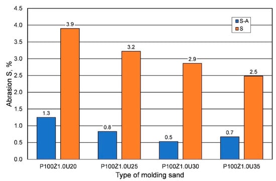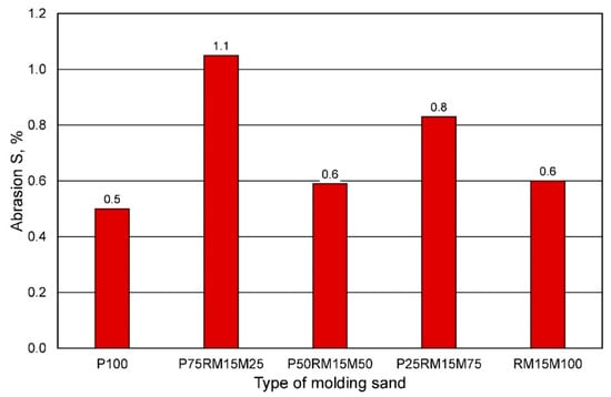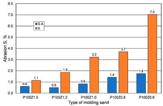 Abrasion S of the molding sand, depending on the sand matrix used.