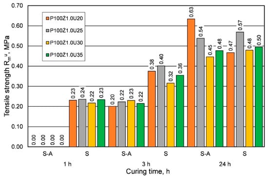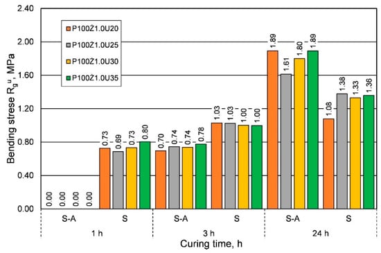 The comparison presented in Figure 3 shows that for the summer weather conditions, for shorter curing times, a greater strength was obtained, regardless of the amount of resin added. On the other hand, for the longest curing time of 24 h, lower or comparable tensile strengths were obtained. Figure 4 shows a comparison of the results of the influence of ambient temperature (seasons) on the bending strength .