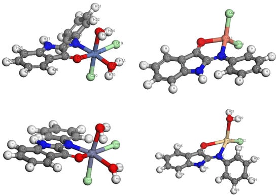 Optimized geometrical structures of L, Cr(III), Mn(II), Fe(III), Co(II), Ni(II), Cu(II), Zn(II), and Cd(II) complexes.
