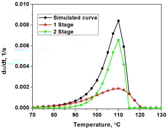 Simulated two-stage DTG curve built using the kinetic parameters from Table 2.