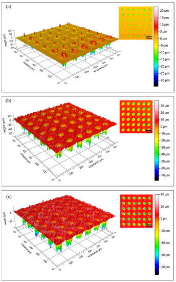 - Singh, A.; Patel, D.S.; Ramkumar, J.; Balani, K. Single step laser surface texturing for enhancing contact angle and tribological properties. Int. J. Adv. Manuf. Technol. 2019, 100, 1253–1267. [Google Scholar] [CrossRef]
