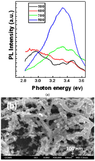 3.2. Optimization of Annealing Temperature from Photoluminescence and SEM