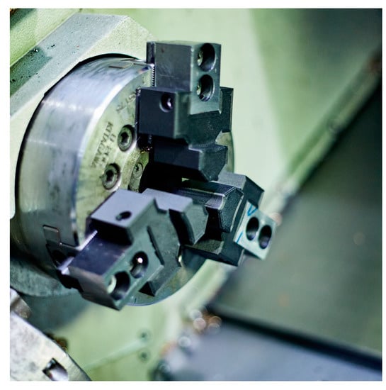 HSC turning requires high spindle rotation speeds, which can pose significant risks in the case of loss of clamping force or poor clamping mechanism condition. Therefore, it is crucial to select sufficiently high clamping force values to ensure the secure clamping of the workpiece. However, lower clamping forces can result in better tolerances [4]. Reducing friction may increase the risk of workpiece slippage, which can lead to collisions that can damage the machine and endanger personnel. Proper clamping of the workpiece during turning is essential for achieving the desired results. Currently, CNC machines are equipped with clamping devices that are directly controlled by the computer, such as pneumatic, hydraulic, and electromagnetic chucks. Of these, chucks are the most used mechanism for securing the workpiece during turning operations. Jaw chucks are the preferred clamping system due to their high flexibility regarding different clamping diameters. However, an important factor that must be considered is the distance between the machining site and the chuck jaws. As the distance increases, the stiffness decreases, resulting in worse quality parameters of the machined surface [5].