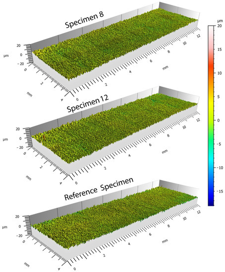 Visual inspection of specimens 8 and 12 compared to the reference specimen.