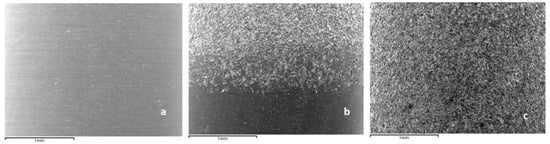 White light interferometry (Wyko NT1100 Optical Interferometer, Veeco Instruments, Plainview, NY, USA), in vertical scanning interferometry mode, was used to produce, evaluate, and quantify the topography. Interferometric measurement presents a high vertical resolution (≈2 nm). The analysis area was 122.5 × 94.6 µm2. The results were analyzed by Wyko Vision 32 (Veeco Instruments, Plainview, NY, USA) applying the Gaussian filter to increase the resolution of the roughness. Four specimens were analyzed characterizing the amplitude parameter (Sa), the spacing parameter (Sm), and the hybrid parameter (Index area).