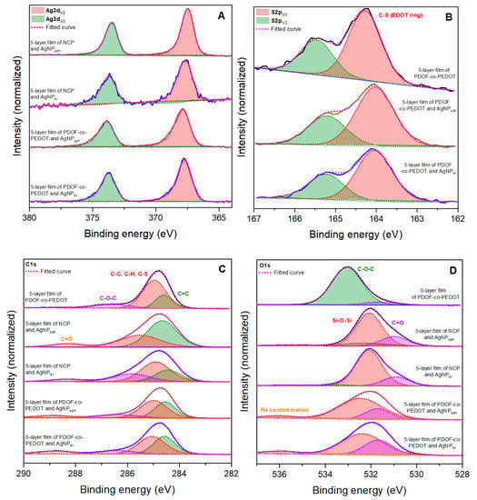 3.2. Films Containing PDOF-co-PEDOT or NCP with AgNP