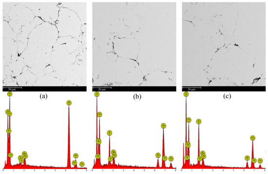 EDS diagram of the sample after annealing at (a) 500 °C, (b) 550 °C and (c) 600 °C.