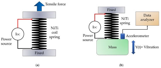 In engineering applications, working with materials outside the linear region allows, in terms of their properties, to extend the range of operation. However, it makes its use difficult and complicates the process of mechanical design. In the case of SMAs, it makes it possible to have materials with variable mechanical properties (stiffness and damping) within a certain range, which from the control point of view opens the possibility of designing adaptive mechanical systems, for instance, vibration absorbers in mechanical devices and structures [15,16]. This, in turn, implies difficulties for its use, since these characteristics must be generated and maintained in appropriate ranges, for example: (a) maintaining an adequate temperature range so as not to deprogram the material or deform it outside the desired range; (b) heat and cool in a controlled way to obtain a predictable mechanical response; (c) heat or cool with the required rate to be able to pass from one state to another (martensite–austenite or vice versa) and not slow down the mechanical processes.