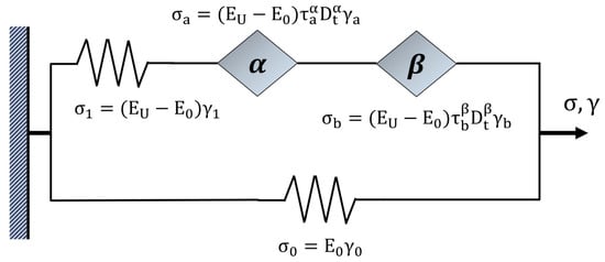 Therefore, from the constitutive equations of spring and springpot elements exhibited in Figure 2, and considering the global stress σ and the global strain γ, the fractional differential equation for the FZM can be written as: