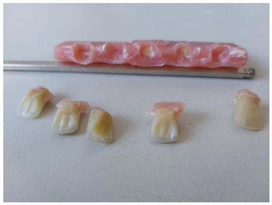 - Prpić, V.; Schauperl, Z.; Glavina, D.; Ćatić, A.; Čimić, S. Comparison of shear bond strengths of different types of denture teeth to different denture base resins. J. Adv. Prosthodont. 2020, 12, 376–382. [Google Scholar] [CrossRef]