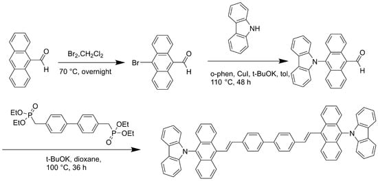 2.1.3. Synthesis of 4,4′-bis[(N-carbazole)anthracylic-vinyl]biphenyl (BABCz)