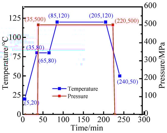 Curing temperature and pressure curves of T300/epoxy prepreg.