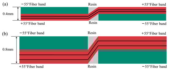 Sectional diagram of FWC structures with variable thicknesses ((a) 0.4 mm, (b) 0.8 mm).