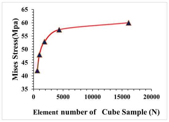 The process of mesh convergence entails reducing the element size and analyzing the effect of this reduction on the solution’s precision. The smaller the mesh size, the more precise the solution, as the behaviour of the design or product is sampled more precisely across its physical domain. The accuracy of numerical results is generally highly dependent on the mesh size utilized in the numerical model. More accurate results can be produced using a smaller mesh size, but this is more computationally expensive and requires greater computer capacity. The smallest mesh dimension is not viable for the CDPM due to software and computer limitations. As a result, performing a mesh convergence study to identify the ideal mesh size is critical. Four concrete cubes with varying mesh sizes (10 mm, 8 mm, 6 mm, 4 mm, and 3 mm) were utilized in the CDPM for the mesh convergence analysis to establish the ideal element size of the concrete model. The conductivity signatures derived from the four concrete cubes are compared in Figure 6. The results reveal a considerable difference in conductance mesh size between the 10 mm, 8 mm, and 6 mm elements. However, the difference between the 4 mm and 3 mm elements is relatively modest. In this study, a mesh size of 5 mm was employed to represent the concrete cube for concrete disaster response assessments, when considering process time and computer memory. The same mesh convergence analysis steps were performed for the four beam sizes for flexural strength, as shown in Figure 7.