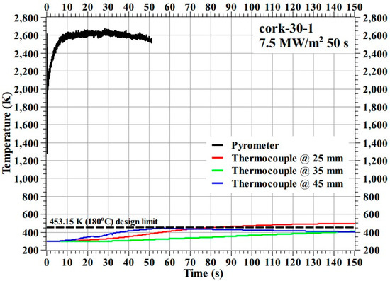 Figure 7 shows the temperature response of the cork-30-1 specimen during the test.