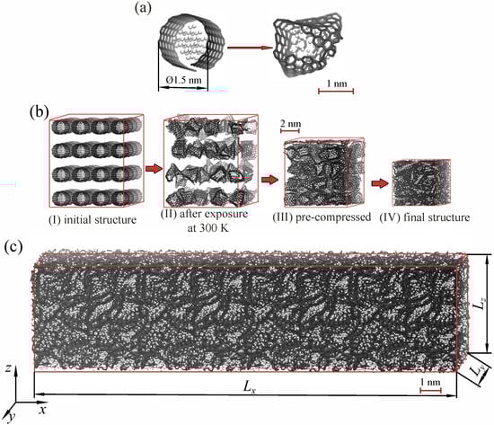 - Baimova, J.; Rysaeva, L.; Rudskoy, A. Deformation behavior of diamond-like phases: Molecular dynamics simulation. Diam. Relat. Mater. 2018, 81, 154–160. [Google Scholar] [CrossRef]
